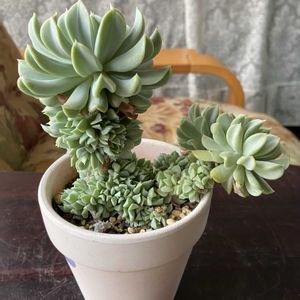 白っぽい涼しげな子を 探して来ました♪ 霜の朝…青白くて紅葉のピンクもほんの少し残ってました🥰 子株も大きくなって好みの姿に成長して来ました オウンスロー錦 去年の夏は散々でした 出来るだけ日の当たらない所に置いてるのに…もう💦 …今年は日陰で様子みようかな トップシータービーも 白くて涼しげです 少し茎立して来ましたが 株元には子株が沢山居ました🍀