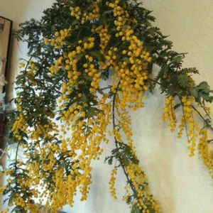 ミモザ狩り。 たまたま買い物帰りに通った道に、ミモザの大木が!! いそいそとハサミを持って、その場所に戻った、その場所は、すごい急な下りの斜面で、下は藪の中にドブ水の流れる川…。 落ちたら死ぬ😫しかも藪で、死体も発見されなさそう…💦 同じ考えの人もいるみたいで、手の届く範囲の枝はもう、誰かに切り取られてた😂 少しだけだけど、なんとか収穫出来た✨カイガラムシや、ミノムシついてたけどね。 来年は私が1番乗りするぞー😆