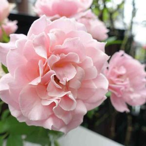 ひらひらふりふりのサーモンピンク色の花弁が可愛いらしい姿👼の薔薇 惜しいことに、ほとんど香りが無い,,, でも散らない❗️ 花持ちが良く、退色しても散らない❗️ なので、お隣さんとの境界に植えている (*´ω`*)♪ 散っては困る場所に植える薔薇として、とてもオススメ品種(⁎˃ᴗ˂⁎)