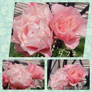 薔薇 ダフネが咲きましたー。✨ この子は一度消えそうになっていたのですが、リキダスを毎週土壌灌水して復活しました〜。 鉢植えですが去年大株になり、小庭の壁につる仕立てにしています。😄 柔らかなピンクの花。 揺れる波のような軽やかな花びらは、重なり合ってとても魅力的です。独特な香りも。病気に強いので育てやすく、小さなつるバラにもなります。 花名はアポロンからの求愛を拒み、自ら身を月桂樹に変えた、ギリシャ神話の精霊“ダフネ”から。 このバラも条件が揃うと、乙女のような花からグリーンの花へと変化します。🍀
