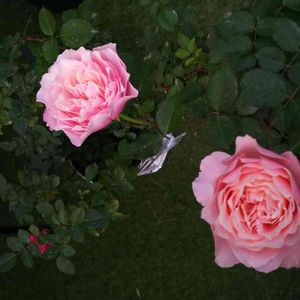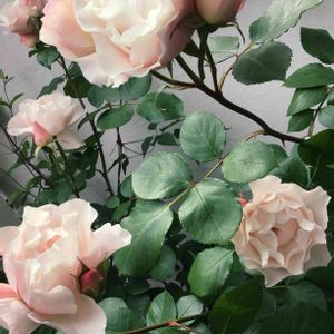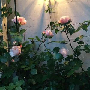 柔らかで優しいピンク色の薔薇🌹🌿ダフネ 去年、枝が良く伸びたので、つる薔薇仕立てでラティスに誘引 可愛らしさは、文句無し (⁎˃ᴗ˂⁎)❤️ 思っていた場所より高い位置で咲くので、欲を言えば、花枝がもう少し短いといいなぁ… 来年はもっと、低めに誘引しようo(`^´*)!