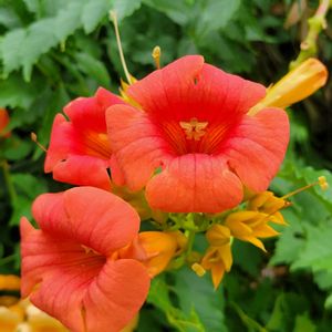 ♪♪♪ 見頃♡華やかデシタ〜 .•*¨*•.٩(*´꒳`*)۶ .•*¨*•.♬ アメリカノウゼンカズラ: ・北アメリカ東部原産. ・大正時代末期に日本に渡来. ・花期: 7〜10月 ˚❁。.・˚❁。.・˚❁。.・˚❁。.・˚❁。.・ 偶然.出会いᑋᵃᵖᵖᵞ .. .•*¨*•.•*¨*•.♬ 風そよぐ..よぅやく.ちぃさい秋.デスネ @atc