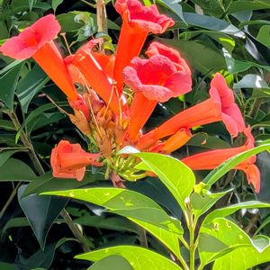 植栽の低木の上のアメリカノウゼンカズラさんと思います 仲良く暮らしているようです