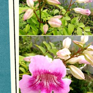 おはようございます 1枚目は数日前から咲き始めたピンクノウゼンカズラ🩷 2枚目は夏中元気に咲いているアメリカノウゼンカズラ🧡