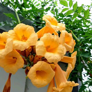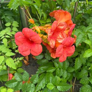 今日のお花 🌿🏵ノウゼンカズラ🏵🌿 凌霄花 別名 ノウゼン ノショウ トランペット・フラワー ノウゼンカズラ科 ノウゼンカズラ属 4⃣5⃣ アメリカノウゼンカズラ (亜米利加凌霄花) お花は小型で集散花序