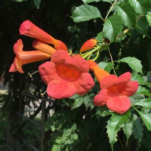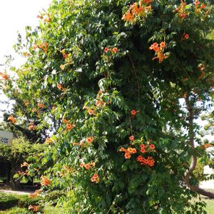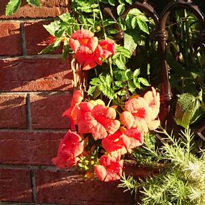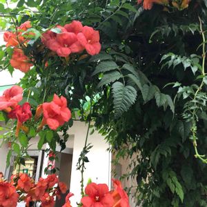 夏のお花♡って感じです☺️ 9月まで咲くそうです❤️🌿✨ でも有毒植物😳 アメリカ凌霄花
