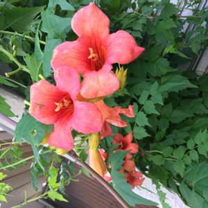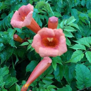 おはようございます。梅雨の晴れ間にアメリカノウゼンカズラが、可愛らしく咲いていました。ラッパみたいです。