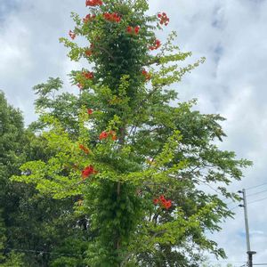 ノウゼンカズラ 2020,6,14 11:56撮影 隣駅前の植栽地 イチョウの木のアメリカノウゼンカズラ 去年より花数が増えて豪華になった。 他に3本くらいのイチョウの木にも巻き付いてたけど、今年は見られなかった。 来年はどうなってるんだろう