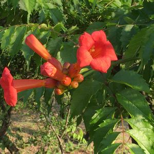 ノウゼンカズラに似ているとも思いますが、茎や葉のつき方、また1つにつく花の数が少なめです