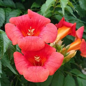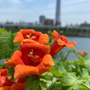 アメリカノウゼンカズラ 🌸☘🌼 ノウゼンカズラより濃い紅色です😊