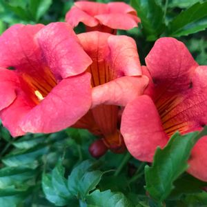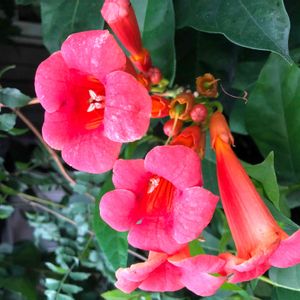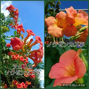 8/14(水) アメリカノウゼンカズラ キバナアメリカノウゼンカズラ 💠アメリカノウゼンカズラ 💠学名 Campsis radicans (Campsisは「曲がった」雄しべが湾曲し弓型していることを指す。radicansは気根を指す) 💠英名 trumpet vine trumpet creeper 💠和名 亜米利加凌霄花 💠ノウゼンカズラ科 💠ノウゼンカズラ属 💠北アメリカ東部原産の帰化植物 💠落葉蔓性木 💠花期 6月~10月 💠葉は対生。光沢があり、縁は粗い鋸葉。 キバナアメリカノウゼンカズラは去年相模原の麻溝台公園に咲いていました。蟻が沢山いて蜜が甘いんだなーと思いました。 風邪。まだ咳はたまに出ますがだいぶ治ってきました🙌 昨日は早く上がれました‼️ 頭に汗かいて気持ち悪かったので、美容院でカラー&シャンプーしてもらいました。 カラー専門店のお姉さんが本当に優しくて癒されました~❣️❣️ やっぱり優しくされると嬉しいですねー🤗🎵 気分もスッキリしました‼️ 今日はお休み。寝て曜日の予定ですが、どらさん(夫)が「喉が痛くなってきた~😰」と言ってますΣ(゚ロ゚;)うつしたみたい!!家でもマスクしてるし、タオルは別にしてるのに。軽く済んでね~~😅💦ま、退職して家にいるし無理することないから早く治るでしょ←アハハ😄冷たい?だって羨ましいくらい、いくらでも眠れる人だから。