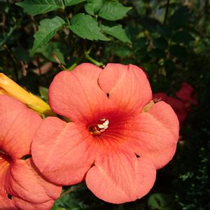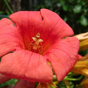 ノウゼンカズラ科ノウゼンカズラ属 学名:キャンプシス(CAMPSIS) “マダムガレン” 和名:アイノコノウゼンカズラ 20190806 作中西 お顔をアップ📷