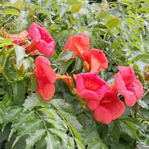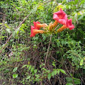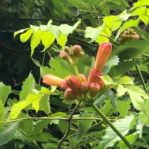 おはようございます🤗 アメリカノウゼンカズラ 変わった形のノウゼンカズラを発見しました。 花が細長いトランペットのような形です😊