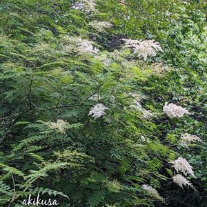 今日は 庭七竈の花穂が ここまで白く咲きました バラ科 ホザキナナカマド属 別名チンシバイ 中国原産