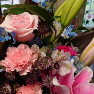 今日は、お友達が💐くれました〜(my Birthdayだったので🤭) ①カーネーションも入った花束 ②③薔薇だけの花束 ④お友達の庭の薔薇をカットしたアレンジ💕