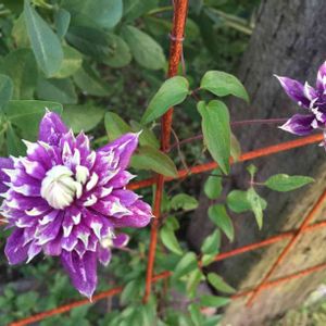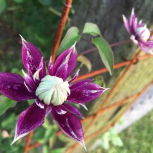 おはようございます😄 クレマチス 大河** 咲き始めました👀 色変わりが楽しめるフロリダ系クレマチス‼️ 昨年お迎えして、初めての開花🏵️ 上の花の真ん中の白い丸いところが 開いてきて、いろんな色を見せてくれるらしい🤔 楽しみだなぁ~🎶