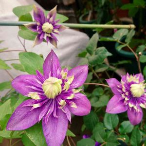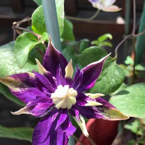 クレマチス 大河 昨年クレマチスの丘で購入した苗を半日陰の花壇に地植えにしましたが調子が良くないので、春に鉢上げしたところ咲き出しました✨ まだまだ本来のお顔ではないけれど嬉しいです💜
