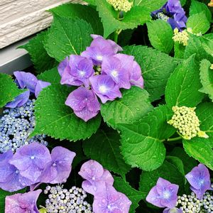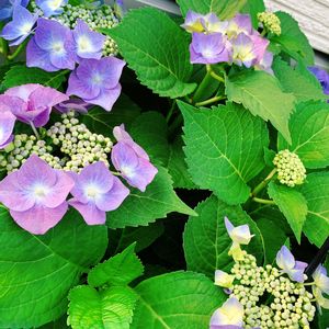 💚紫陽花ブルースカイ💙 最後に咲いた紫陽花です。 青い空💙なんですが、少し紫色になって来ました😢 青い紫陽花用の肥料をあげてみます。