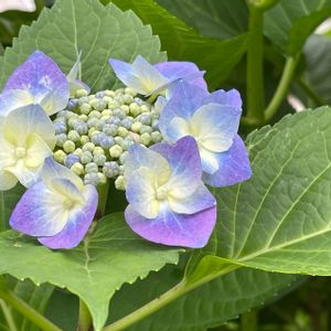 浜寺公園アジサイゾーン 6/19 真花も開く 「ブルースカイ」 表示は、ブルースカイとなっているんですが、装飾花はブルーではありません💦 如何でしょうか。