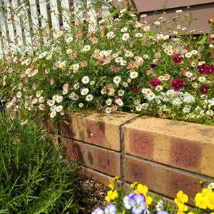 ペラペラヨメナ 面白い名前です 秋に小さく切り戻しするだけの手間いらず^_^ 強く、こぼれ種?からあちこちに芽が出でます (お向かいのブロックの隙間からもO_o)