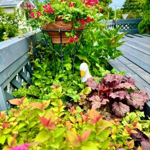 葉っぱの発表会ということで、我が家🌿今のヒューケラたちです🍃 確か🤔27種類あります😁 マイナス15℃の寒さに耐える強い子ですが、夏は日陰の方が元気なんですね〜\(❁´∀`❁)ノ ①西側のウッドデッキ横です ②③ウッドデッキの修理のために 日陰に移動したら。。なんと😳 とっても生き生きしています🎶 早く気がつけば良かったです⸜😆 (居間の外壁の下) このヒューケラはプランター植えなので、移動も簡単なんです😊🎶 ④庭の南向き このpicは、6月頃です ジュンベリーが赤くなり始め 葉っぱ🌿🌿がワサワサしています ⑤夜の玄関横🌃 🏷𓈒𓏸︎︎︎︎8日は葉っぱの発表会