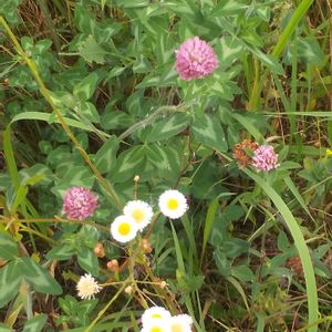 ムラサキツメクサ と、ヒメジオン 同じく水の森の近くの空き地に、 チガヤと共存していました。