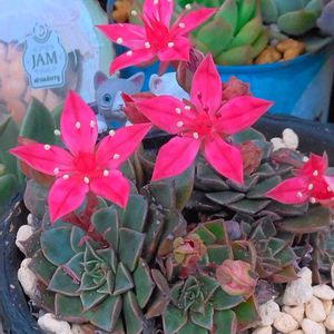 我が家の🍀タキタス🍀に、赤い可愛い花が咲きました🤗💕 去年の梅雨の☔に当て過ぎて、少し傷ませてしまいましたが、見事に復活してくれました(*˘︶˘*).。.:*♡