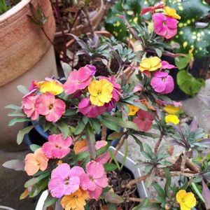 今日のお花、エリシマムです 背の高い方は前回投稿したもので、下の小さい鉢はHCで半額に値引きされてたもので、花も1つしか無く、葉っぱ🌿も下の方は枯れていました でも、不眠不休の看護の甲斐あってか(うそぴょ~ん) なんとか持ち直して今では葉っぱ🌿もフサフサ蕾もたくさん出ています