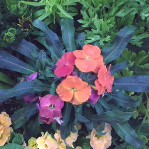 エリシマム スプリングパーティーです 先日、GSのかたの投稿で、ひと株で微妙に花の色が違うジュリアンを投稿されたかたがいてその花が頭からはなれずに昨日園芸店に! そこで同じようなこの花を見つけ即購入しました 南ヨーロッパ原産のアブラナ科の花で耐寒性はマイナス5ºですが高温多湿がにがてなようです 気温や環境で花の色が変わるそうです 因みに花言葉は「愛の絆」 「逆境に変わらない愛」 だそうです カワイイでしょ