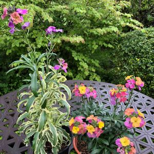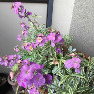 エリシマム バリエガータ✨ 斑入りの葉が長くてきれいなのに 今年は子供苗より短くて小さい💦 お花も小さくて… 残念なバリエガータ💦 でもね〜 色がいいな〜💕 植え替えしてあげないとね😊 ユーフォルビア マルティーニ ユーフォルビア シルバースワンと一緒に🤗