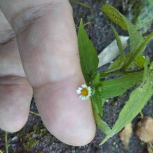 蛙を追いかけていたら見つけた超ミクロなお花。 私の手もごついですが、このお花凄く小さかったんです😳 ※名前はハキダメギクと教えて頂きました🙏 名前の由来は、植物学者の牧野富太郎さんが世田谷の掃溜めで見つけた事から…の様です。 🏷️残念な名前