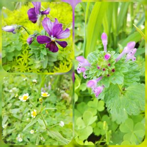 畑の三姉妹。 こぼれ種のビオラと残念な名前の掃溜め菊、シソ科(確か)の仏の座。 近所に小さい三姉妹がいるけれどコロコロ歩いてキャッキャ笑ってお花が咲いてるみたい😊💚 男の子も良いけど姉妹も良いよね~。