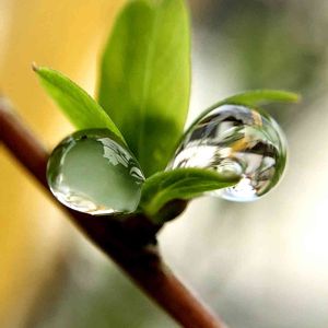 🌿ユキヤナギの新芽についた …°○*。しずくちゃん💧✨ 🥰🥰