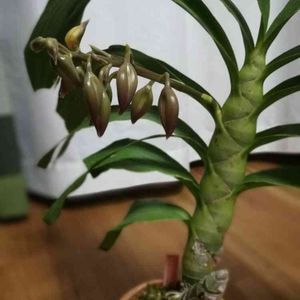 シクノデス ワインデライトさん。 一本目の花茎が満開になり、終わったころに、左に出てるヒョロヒョロの花茎がまた出て、なんだか雰囲気が違う花をちょろっとつけて早々に散る。 と思ったら、新芽かな?新たにポチっと。 回転率が本当に高い子です。