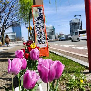 ちょっくら用事がありまして出かけたんですよ。 行きは、バスに乗って行って 帰りは、駅まで歩いてこうと思いまして 天気も良さげで 陽気もこれまた、よく おまけに 街中 チューリップ🌷なもんだっけ 繁華街から駅までの道は、ずっとチューリップでしたよ。 橋を渡る前に看板がありまして、 『萬代橋チューリップフェスティバル』 (ФωФ)フェスだよ♪︎フェス♪︎フェス♪︎ 橋の上でチューリップを見ながら~の大きな川を眺め 空を見ると飛行機雲があっちからもこっちからもとあり 交差していました。 新潟市 萬代橋