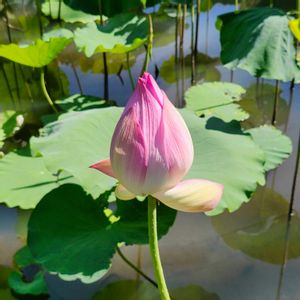 仮の住まいに来て なんやかんやとあり~ので 気がついたら 今日で6月も終わり… (ФωФ)マジ、ハヤッ! なんやかんやとある中 この間 馴染みの神社に挨拶に上がり 蓮池の蓮は、どんげなもんだろっか?と思って見てきたんですよ。 葉っぱがワサワサで 所々から ヌヌヌゥ~と蕾が顔をだちょりました。 梅雨が開けたら 蓮の花の季節ですね。