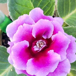 グロキシニアが一輪だけ咲きました。蕾が有るのに、中々思うようにいかず諦めてた花。 う~ん綺麗💗🌸 一人で満足してる私🤭