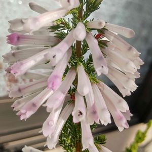 庭の寄せ植えから🌸 昨年の秋に寄せ植えしたエリカとダイアンサス、エリカの花が咲き始め小さな蕾が沢山出てきたよ~😀 後ろのブルーはアリッサムまだ元気一杯です💗🤍💙