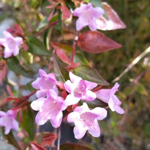 今日の散歩🚶♀️~🌸 チラチラと❄️が舞う堤防の道を、散歩して来たよ😅 この花は、アベリア (ピンク)まだ蕾もあり、結構咲いています。 花後も可愛いよ~😀 最後の2枚は堤防から見た景色、青空出てるけど、反対側の北は灰色で何も見えず🥶❄️が降ってるのよ…😓