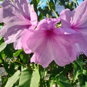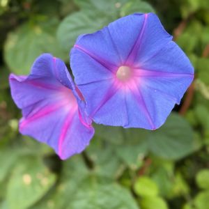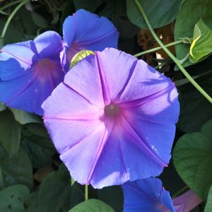 💜ノアサガオ(野朝顔) アサガオは午前中にしぼみますが、沖縄原産のノアサガオは夕方まで咲いています。つるは長く伸び、繁殖力も旺盛です。 ⚫︎ヒルガオ科 サツマイモ属 ⚫︎原産 沖縄 ⚫︎花期 6月〜11月
