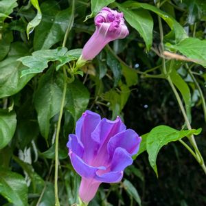 🏷愛しの紫🏷青い花マニア 🏷花咲く乙女たち♡ おはようございます🎶 部屋で冬越しした琉球アサガオが咲き始めました💜💙 ①② 琉球アサガオ💜💙 ③④ スカシユリ💞 この子は地植えです💗 ⑤ キンギョソウ💛 アッツザクラの鉢にこぼれ種から キンギョソウが咲きました💛🪴 ちっちゃくて可愛いです🌿 今日も宜しくお願いします🤗