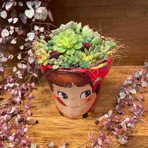 6月のペコちゃん祭りにミルキーの袋をデコパージュ(?)して作ったしわしわリメ鉢❣️ 午前中にあわてて寄せ植えしました😅💦 今日は🏷ペコちゃん祭りと気づいて ニ投目です😅💦 いつも気づくの遅くてニ投目になってしまいます😮💨