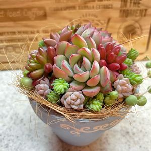 今日ほぼ1年ぶりに会うお友達にプレゼントしようと思ってさっき作りました😆 あげる時には重くならないように ・切花感覚で渡す ・枯れてもいいという覚悟で ・あれからどうなったか聞かない(笑) を心がけています😅💦 でも多肉の楽しさを知ってくれたら1番嬉しいけどね😊
