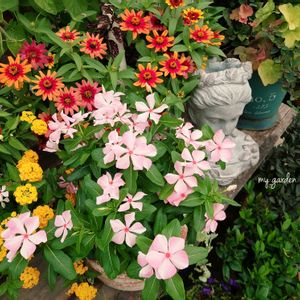今日のお花たち。 日々草の彩夏がとっても可愛くなりました〜! 雨が降ったり突然晴れたり不安定な天気が続く中、他の寄せ植え達も頑張ってくれてます❁