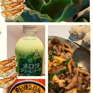 番外編 食べ物🥟🥟 上 エケベリア黒玉子 右下 第2回目の料理教室🍳🌮 豚肉.卵.野菜のオイスターソース炒め (木茸肉)来月から生徒さんが 倍になるって😅💦💦 左下 久しぶりの明宝ハム‼️ 炒飯にすると、味が要らない😁 左真ん中 🎶チェリオ⤴️学生時代 強炭酸、安い❗️腹ペコ学生👨🎓には ありがたいドリンク🥲🥤でした🤗 今、半分もよう飲まないですね〜💦💦 黒玉子が餃子🥟に、似てるので 何となく、食べ物で🤗😁⤴️