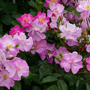 ラベンダードリーム つる性❓半つる❓ どちらでもいいですが…🤣 木立性を大きくしたようなものです😊 修景バラと言われる事もあります。 満開の時は、香りも最高です🥰 春以降も、ポツポツ咲きます🥀 夏は葉が落ちると聞いたことも🤔 春バラに比べて、 秋バラはピンク色が強く出てるようです