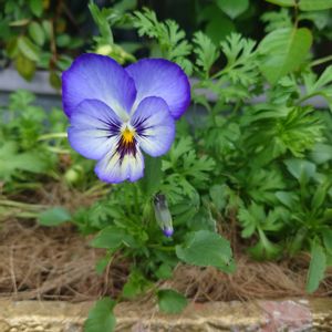 こぼれ種ビオラ お庭にこぼれ種で発芽していたものをポット上げして育ててみたら可愛いビオラが咲きました💙 どんなのが咲くのかな〜?って咲くまで楽しみで咲いたら嬉しくて😍 こぼれ種ビオラ、ハマりそう😳💓💓