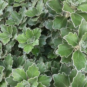 こんにちは〜♬ 出掛け先で見つけました🎶 綺麗に縁取りしてあるような 涼しそうな葉っぱ🍃🍃🍃🍃 名前がわかりません💦 どなたか 教えてください🙇♀️