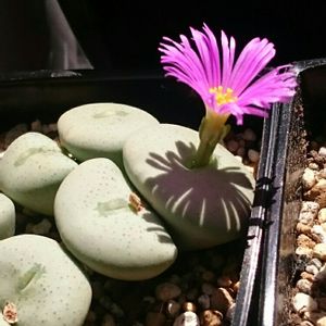 1月 7日にupした コノフィツム 雨月 鉢増ししました。 寝起きで枕の跡がついたみたいになってます