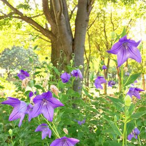 遠くに見える木は、「ポプラ」さん✨ 緑が綺麗な背高のっぽの木🌲✨✨✨ 「カエデ」さんからの木漏れ日✨✨ 手前に咲いている 「ギボウシ」さん💕も太陽🌞の陽射しを 浴びてキラキラ✨✨✨